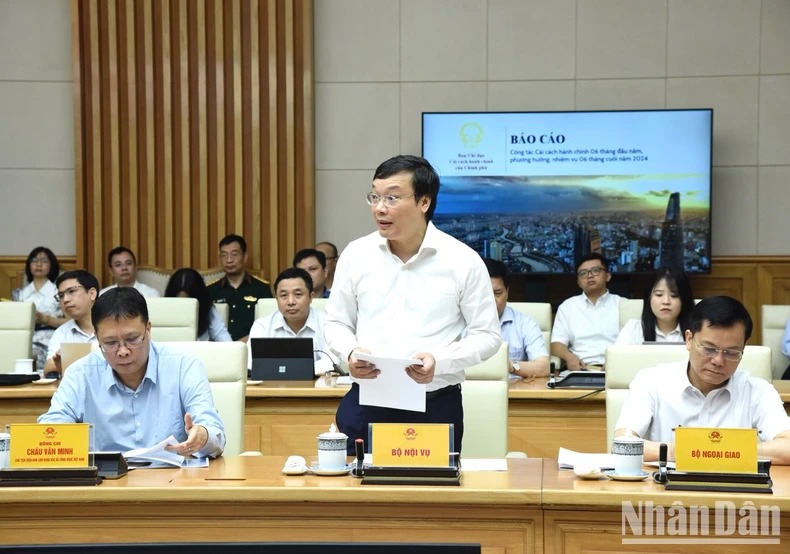 Triển khai, hướng dẫn, đôn đốc các bộ, ngành, địa phương hoàn thành việc sắp xếp đơn vị sự nghiệp công lập, các đơn vị hành chính cấp huyện, cấp xã trong tháng 9/2024, phù hợp tình hình địa phương, bảo đảm hiệu quả, giảm chi thường xuyên của Nhà nước, tăng tính tự chủ. Khẩn trương xây dựng, hoàn thiện hồ sơ đề nghị xây dựng Luật sửa đổi, bổ sung Luật Cán bộ, công chức; Luật Viên chức; Luật Tổ chức Chính phủ; Luật Tổ chức chính quyền địa phương; Nghị định về chính sách thu hút và trọng dụng người có tài năng vào cơ quan nhà nước. Triển khai các nội dung cải cách chính sách tiền lương theo Kết luận số 83-KL/TW ngày 21/6/2024 của Bộ Chính trị và Nghị quyết số 142/2024/QH15 của Kỳ họp thứ 7, Quốc hội khóa XV; kịp thời đôn đốc, hướng dẫn tháo gỡ những vướng mắc, bất cập trong quá trình thực hiện.