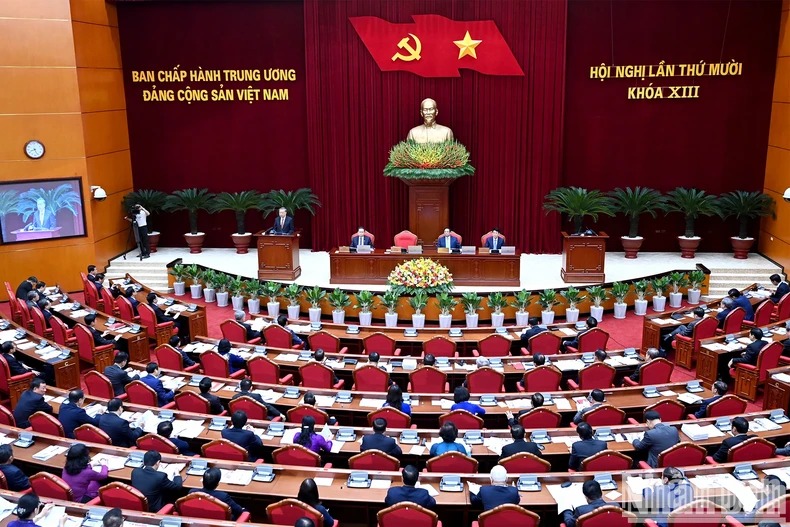 Thực hiện Chương trình làm việc toàn khóa, hôm nay, Ban Chấp hành Trung ương Đảng khóa XIII tổ chức Hội nghị lần thứ 10. Hội nghị diễn ra vào thời điểm rất đặc biệt: Đồng chí Tổng Bí thư Nguyễn Phú Trọng, nhà lãnh đạo đặc biệt xuất sắc, Nhà tư tưởng, ngọn cờ lý luận của Đảng đã vĩnh biệt chúng ta vào thời điểm toàn Đảng, toàn dân, toàn quân đang quyết tâm thực hiện thắng lợi toàn diện Nghị quyết Đại hội XIII của Đảng; cơn bão số 3 gây thiệt hại hết sức nặng nề về người và tài sản ở hầu hết các tỉnh, thành phố phía bắc; khi toàn Đảng, toàn quân, toàn dân đang tập trung nỗ lực cao nhất để khắc phục hậu quả do cơn bão gây ra...