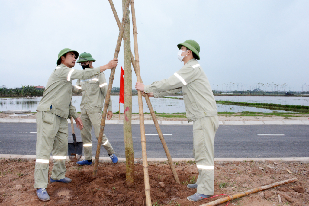 Trồng cây xanh tạo cảnh quan tại xã Liên Phương (thành phố Hưng Yên)