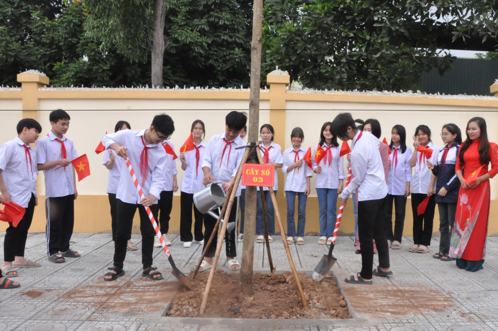 Học sinh xã Nghĩa Hiệp trồng cây sau Lễ phát động Tết trồng cây huyện Yên Mỹ