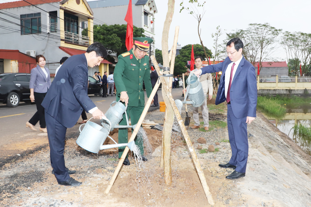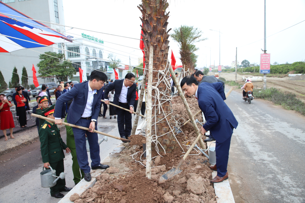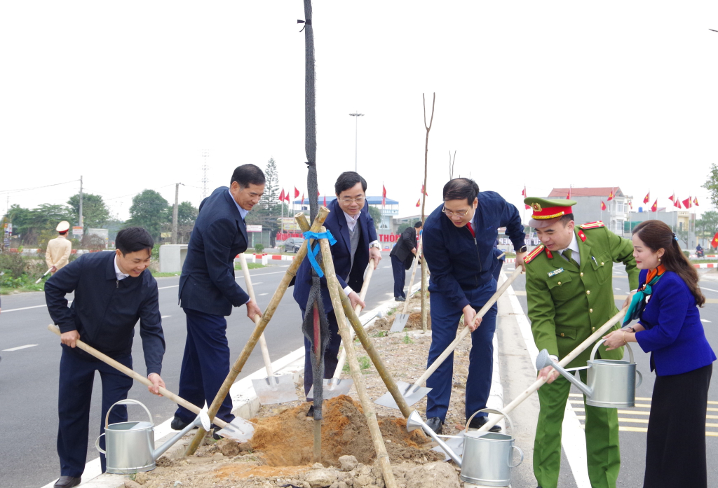 Ngay sau lễ phát động, các đại biểu đã trồng cây tại tuyến đường mới Ngã 6 Quán Bầu, thôn Cát Dương (xã Tống Phan).