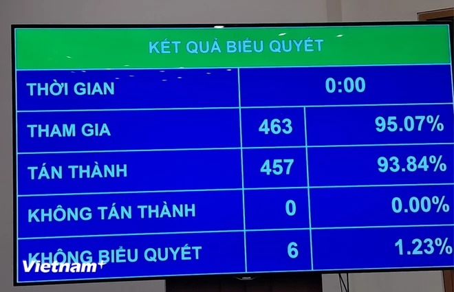 Với 457 đại biểu tham gia biểu quyết tán thành (chiếm tỷ lệ 93,84 %), Quốc hội đã chính thức thông qua dự thảo Luật Lưu trữ (sửa đổi).