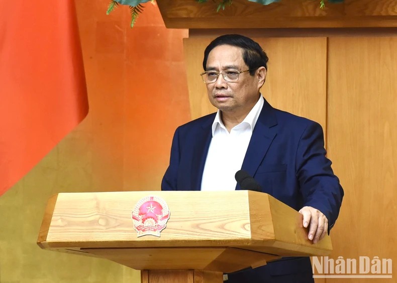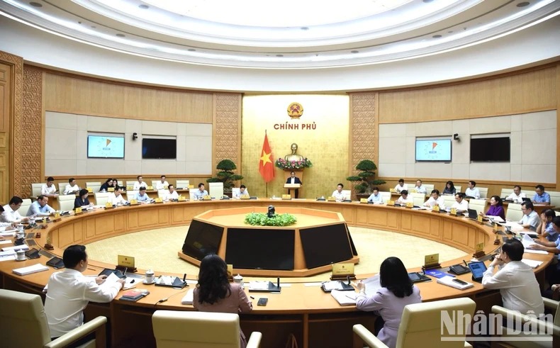 Thủ tướng Phạm Minh Chính phát biểu chỉ đạo Phiên họp Chính phủ thường kỳ tháng 7. (Ảnh: TRẦN HẢI)