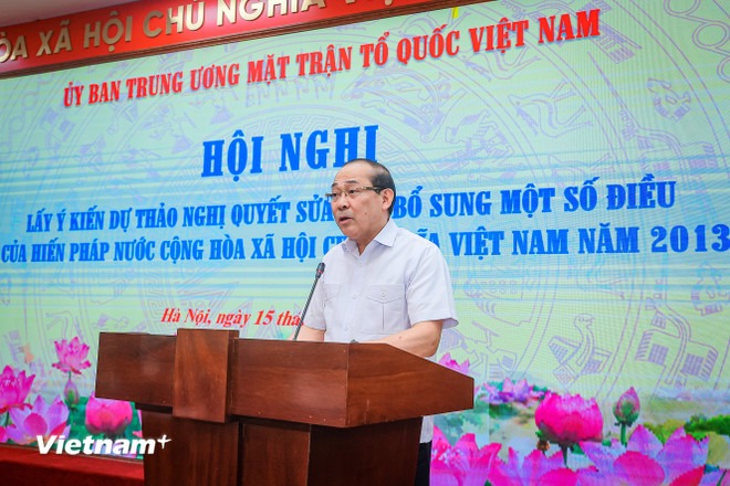 Chiều ngày 15/5, tại Hà Nội, Phó Chủ tịch Ủy ban Trung ương Mặt trận Tổ quốc Việt Nam Hoàng Công Thủy chủ trì Hội nghị lấy ý kiến dự thảo Nghị quyết sửa đổi, bổ sung một số điều của Hiến pháp nước Cộng hòa xã hội chủ nghĩa Việt Nam năm 2013.