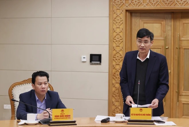 Thứ trưởng Bộ Tài nguyên và Môi trường Trần Quý Kiên báo cáo tại cuộc họp. (Ảnh: Văn Điệp/TTXVN)