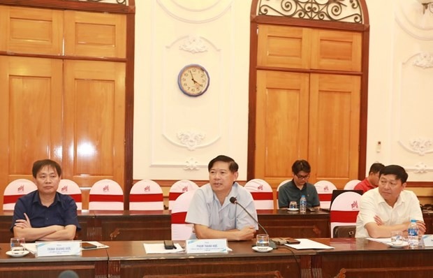 Phó Trưởng ban Chỉ đạo Cuộc vận động “Người Việt Nam ưu tiên dùng hàng Việt Nam” thành phố Hà Nội chủ trì Đoàn kiểm tra số 2 với Hiệp hội doanh nghiệp nhỏ và vừa Hà Nội, tại Tổng Công ty May 10. (Ảnh: Xuân Quảng/Vietnam+)