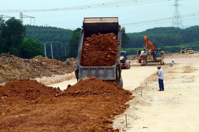 Công nhân làm xuyên Tết tại Dự án thành phần Vạn Ninh-Cam Lộ thuộc Dự án Cao tốc Bắc-Nam. (Ảnh: Tá Chuyên/TTXVN)