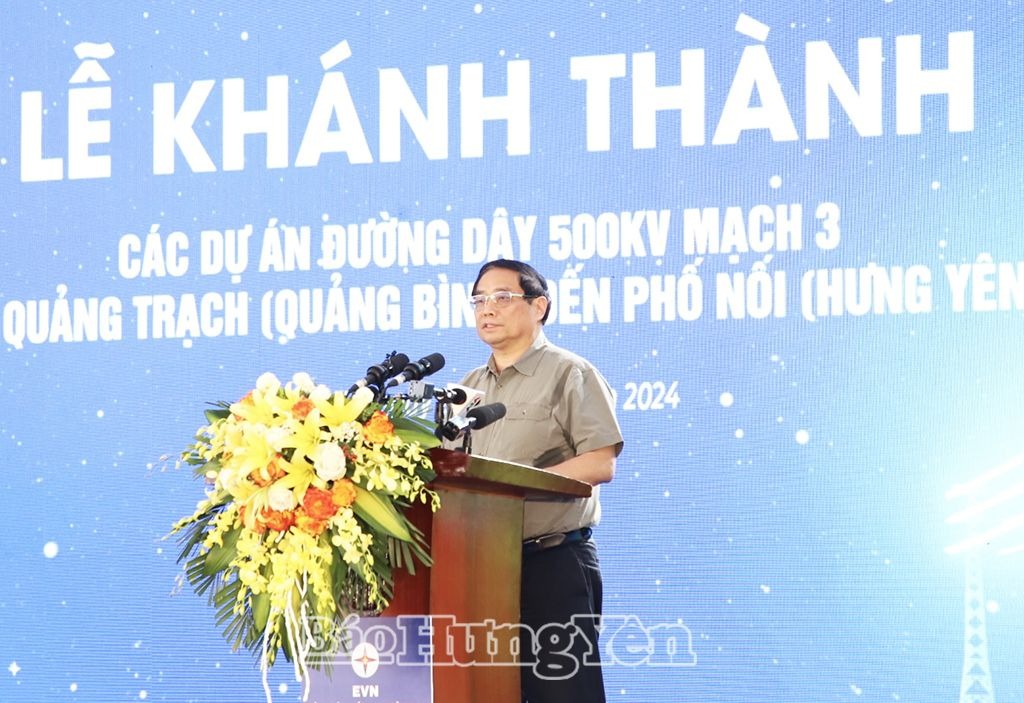 Phát biểu tại buổi lễ, Thủ tướng Chính phủ Phạm Minh Chính biểu dương sự nỗ lực của EVN và các cấp, các ngành, sự đồng thuận, ủng hộ của người dân trong việc triển khai thực hiện Dự án đường dây 500kV mạch 3 từ Quảng Trạch (Quảng Bình) đến Phố Nối (Hưng Yên). Nhấn mạnh những khó khăn, thách thức trong việc triển khai thực hiện dự án, đồng chí Thủ tướng Chính phủ cho biết, với sự lãnh đạo, chỉ đạo quyết liệt của Chính phủ, sự quyết tâm, nỗ lực của cả hệ thống chính trị, dự án đường dây 500kV mạch 3 từ Quảng Trạch (Quảng Bình) đến Phố Nối (Hưng Yên) là dự án có tiến độ thi công thần tốc, thể hiện sự đoàn kết, thống nhất của cả hệ thống chính trị dưới sự lãnh đạo của Đảng. Công trình đưa vào vận hành góp phần bảo đảm an ninh năng lượng quốc gia; củng cố niềm tin với các nhà đầu tư, đối tác nước ngoài; thể hiện sự khát vọng, niềm tin, giá trị của con người Việt Nam…