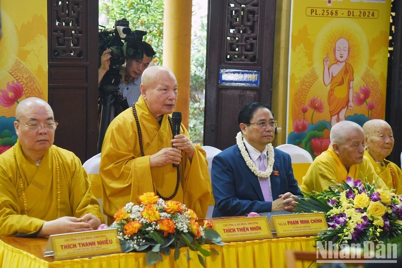 Thay mặt lãnh đạo Đảng, Nhà nước, Thủ tướng trân trọng cảm ơn và đánh giá cao những đóng góp của Giáo hội Phật giáo Việt Nam, của toàn thể các tăng, ni, Phật tử Việt Nam cho cộng đồng, cho toàn xã hội và cho đất nước Việt Nam anh hùng.