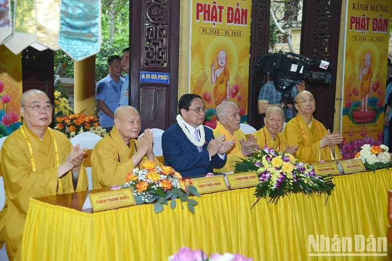 Sáng 22/5, nhân Đại lễ Phật đản Phật lịch 2568 - Dương lịch 2024, Thủ tướng Chính phủ Phạm Minh Chính đã tới chúc mừng Lãnh đạo Trung ương Giáo hội Phật giáo Việt Nam và dự Đại lễ Phật đản với chức sắc, tăng ni, Phật tử tại chùa Quán Sứ, Hà Nội.