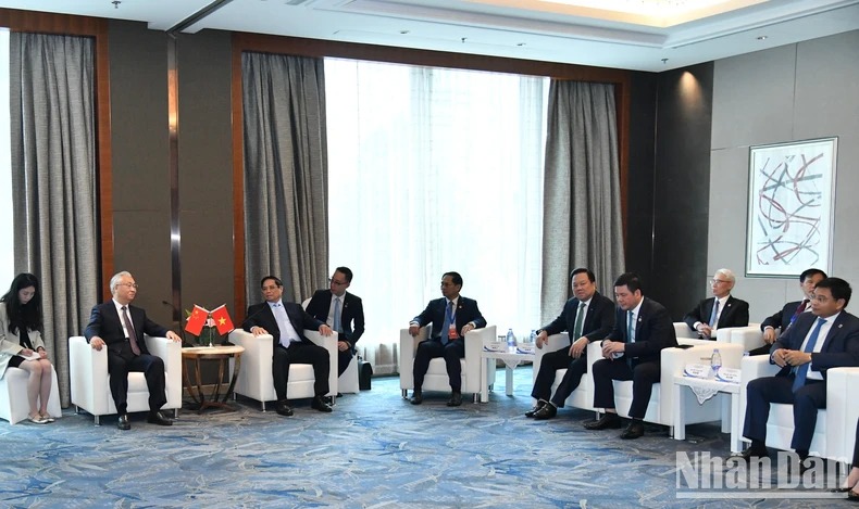 Thủ tướng Phạm Minh Chính bày tỏ vui mừng và cảm ơn Phó Thủ tướng Trương Quốc Thanh đã tham dự Hội nghị hợp tác Việt Nam-Trung Quốc về phát triển hạ tầng chiến lược giao thông và vai trò của các doanh nghiệp Việt Nam-Trung Quốc, thể hiện sự quan tâm rất lớn của Chính phủ hai nước về hợp tác trong lĩnh vực này giữa hai nước trong thời gian tới.