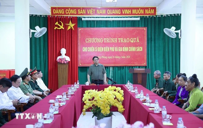 Hướng tới kỷ niệm 70 năm Chiến thắng lịch sử Điện Biên Phủ (7/5/1954-7/5/2024), chiều 16/4, Ủy viên Bộ Chính trị, Thủ tướng Chính phủ Phạm Minh Chính đã dâng hương tại Khu tưởng niệm Đại tướng Võ Nguyên Giáp ở Khu di tích Sở Chỉ huy chiến dịch Điện Biên Phủ; gặp mặt, tặng quà tri ân gia đình các chiến sỹ Điện Biên, gia đình chính sách tại xã Mường Phăng, thành phố Điện Biên Phủ, tỉnh Điện Biên.