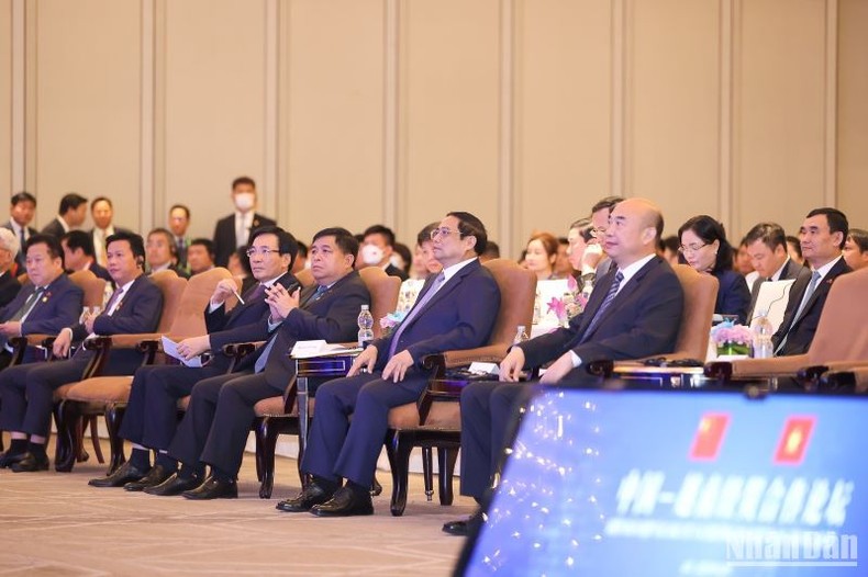 Cùng dự có Phó Thủ tướng Trung Quốc Lưu Quốc Trung; lãnh đạo các bộ, cơ quan và hơn 350 doanh nghiệp hai nước Việt Nam-Trung Quốc.