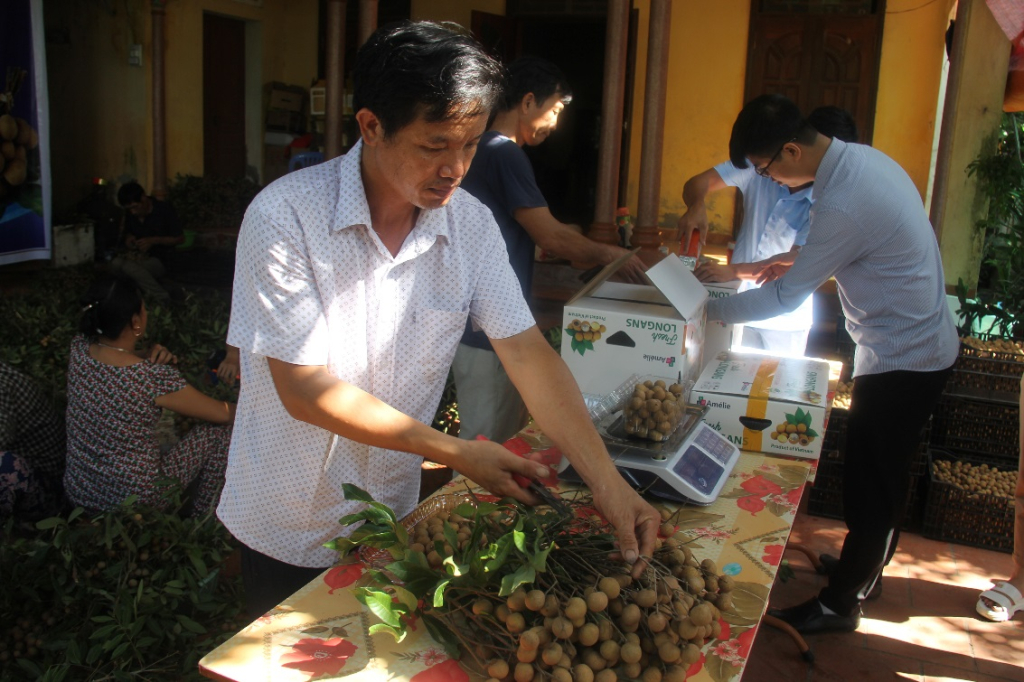 Tại xã Hàm Tử (Khoái Châu), nông dân đã thành lập Hợp tác xã (HTX) nhãn Miền Thiết với mô hình thâm canh cao, xây dựng chuỗi sản xuất nhãn theo hướng an toàn; thường xuyên tiếp cận với các doanh nghiệp có kinh nghiệm xuất khẩu rau quả ở Thành phố Hồ Chí Minh và Hà Nội để mở rộng thị trường xuất khẩu. Bà Nguyễn Thị Thuý ở thôn An Cảnh, xã Hàm Tử cho biết: Những năm gần đây, vườn nhãn của gia đình tôi luôn trong tình trạng không đủ để cung ứng. Từ năm 2015, gia đình tôi chuyển dần từ giống nhãn Miền Thiết sang trồng nhãn siêu ngọt. Do thời gian chín muộn hơn các giống khác, chất lượng quả ngon nên giá nhãn siêu ngọt bán thường cao gấp 2 - 3 lần so với nhãn Miền Thiết. Với 2 héc-ta nhãn, năm 2022, gia đình bà Thúy thu được hơn 10 tấn quả với giá từ 30.000 đến 40.000 đồng/kg. Năm 2023, sản lượng nhãn của gia đình bà mặc dù giảm nhưng vẫn đạt khoảng gần 10 tấn.