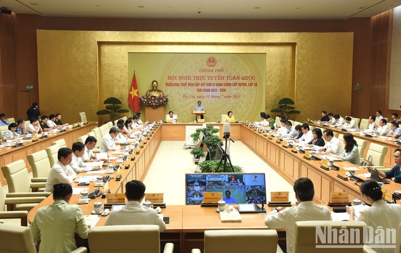 Sáng 31/7, tại Trụ sở Chính phủ, Thủ tướng Phạm Minh Chính chủ trì Hội nghị trực tuyến toàn quốc triển khai thực hiện sắp xếp đơn vị hành chính cấp huyện, cấp xã giai đoạn 2023-2030.