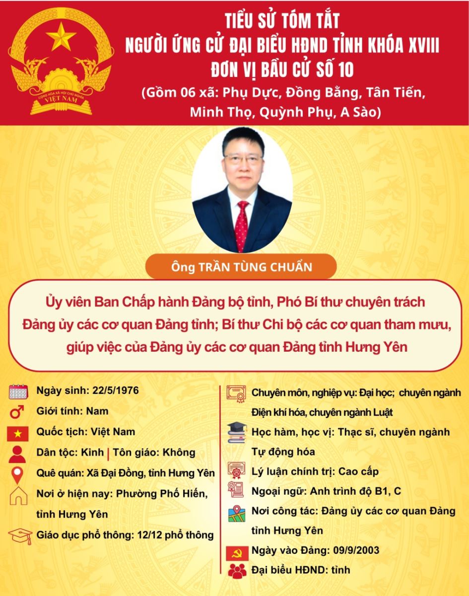 TIỂU SỬ VÀ CHƯƠNG TRÌNH HÀNH ĐỘNG CỦA ỨNG CỬ VIÊN ĐẠI BIỂU HĐND TỈNH KHÓA XVIII TẠI ĐƠN VỊ BẦU CỬ SỐ 10: ÔNG TRẦN TÙNG CHUẨN