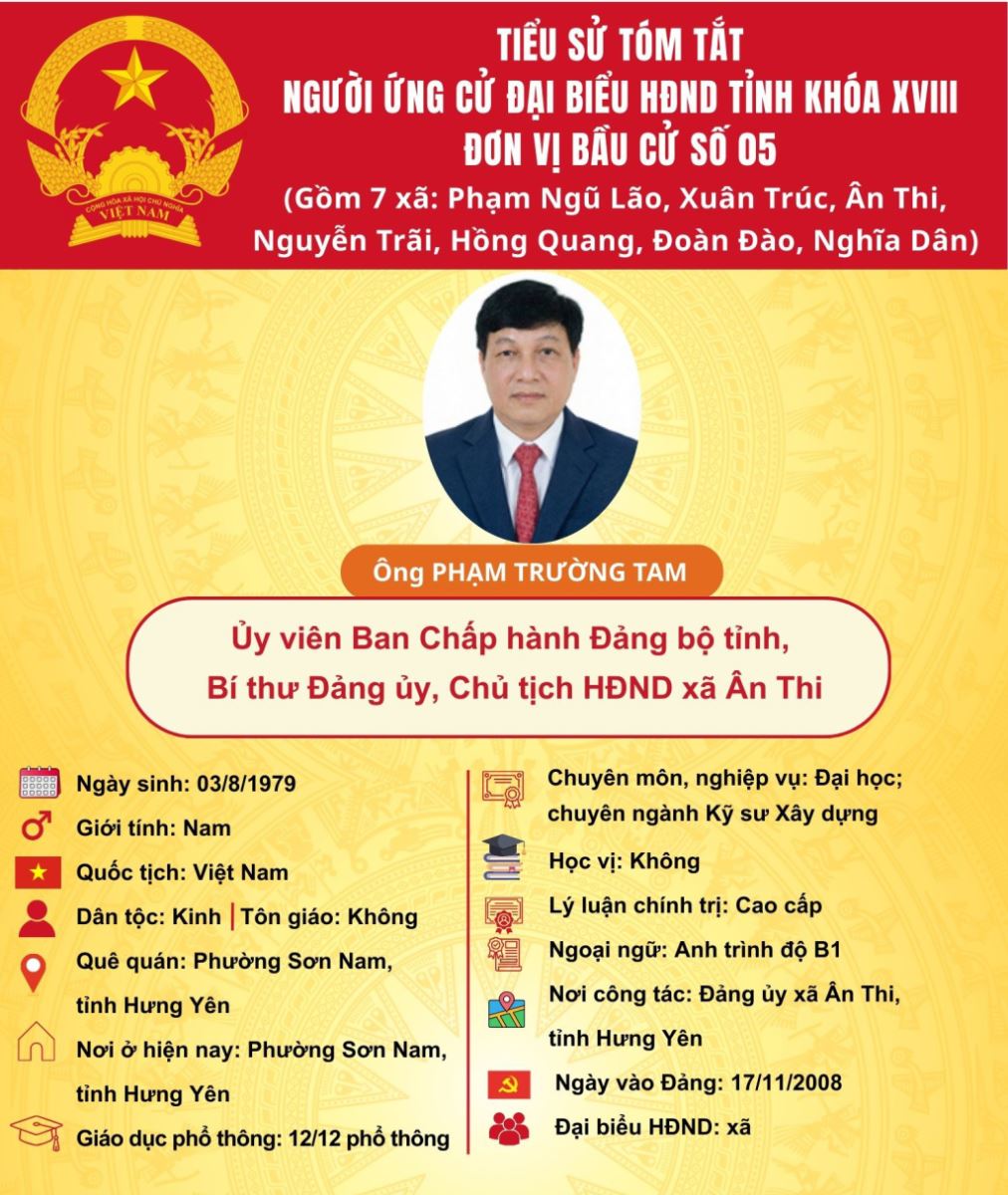 TIỂU SỬ VÀ CHƯƠNG TRÌNH HÀNH ĐỘNG CỦA ỨNG CỬ VIÊN ĐẠI BIỂU HĐND TỈNH KHÓA XVIII TẠI ĐƠN VỊ BẦU CỬ SỐ 5: ÔNG PHẠM TRƯỜNG TAM