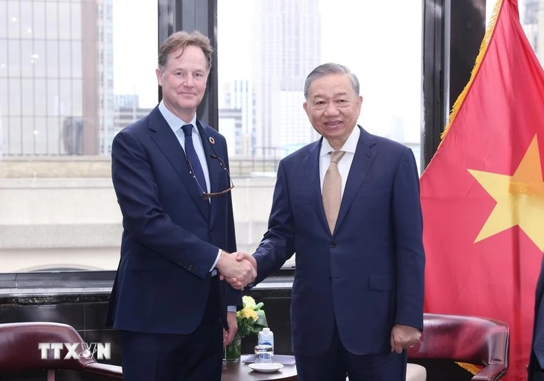 Tổng Bí thư, Chủ tịch nước Tô Lâm tiếp Chủ tịch phụ trách Đối ngoại Toàn cầu của Meta, ông Nick Clegg. (Ảnh: Lâm Khánh/TTXVN)