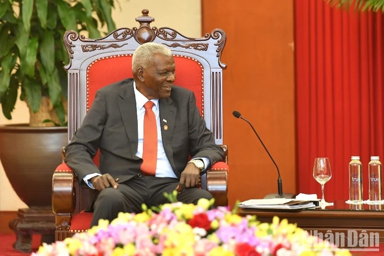 Chủ tịch Quốc hội Cuba Esteban Lazo Hernandez cảm ơn Tổng Bí thư Nguyễn Phú Trọng dành thời gian tiếp Đoàn và chuyển lời thăm hỏi của Đại tướng Raúl Castro, Lãnh tụ cách mạng Cuba; Bí thư thứ nhất, Chủ tịch nước Díaz-Canel, các đồng chí lãnh đạo Cuba đến Tổng Bí thư Nguyễn Phú Trọng - người bạn thân thiết của nhân dân Cuba.