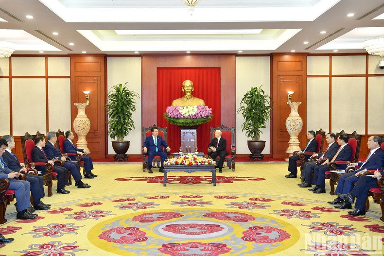 Tổng Bí thư chia sẻ về tình hình Việt Nam, nhấn mạnh, những năm qua Việt Nam đã có bước phát triển mạnh mẽ, Việt Nam chưa bao giờ có được cơ đồ, tiềm lực, vị thế và uy tín quốc tế như ngày nay. Mặc dù còn đối mặt với nhiều khó khăn, thách thức trong tình hình thế giới diễn biến phức tạp, nhưng Việt Nam quyết tâm xây dựng đất nước độc lập, tự chủ, hòa bình, hữu nghị với các nước; Việt Nam sẽ tiếp tục đẩy mạnh công cuộc đổi mới, là bạn, đối tác tin cậy của tất cả các nước trên thế giới, nhất là các nước gần gũi như Hàn Quốc.
