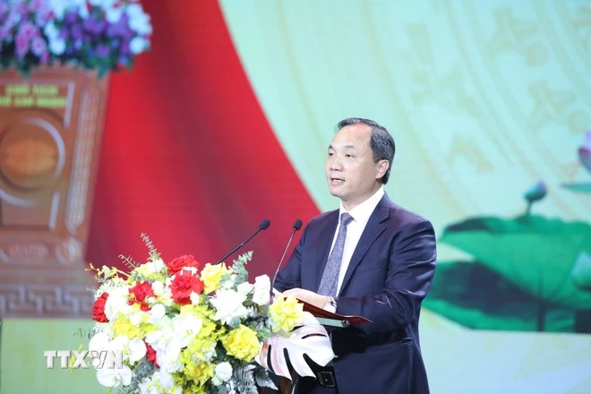 Bí thư Tỉnh ủy Hà Tĩnh Hoàng Trung Dũng đọc diễn văn khai mạc. (Ảnh: Hoàng Ngà/TTXVN)