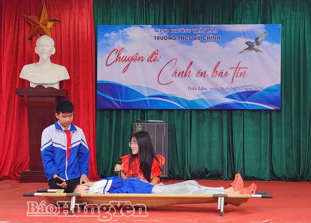 Sáng ngày 26/1, Trường THCS Vũ Chính (phường Trần Lãm) tổ chức chuyên đề “Cánh én báo tin - Đón Tết bình yên”.