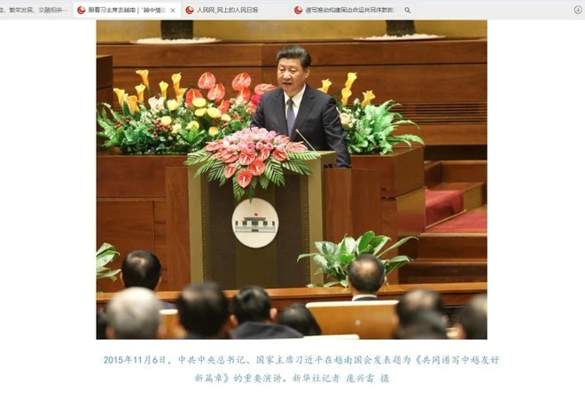 Ảnh minh họa trong bài viết của Nhân dân nhật báo: Tổng Bí thư, Chủ tịch Tập Cận Bình phát biểu trước quốc hội Việt Nam nhân chuyến thăm Việt Nam tháng 11/2015. (Ảnh: Công Tuyên/TTXVN)