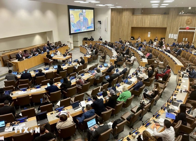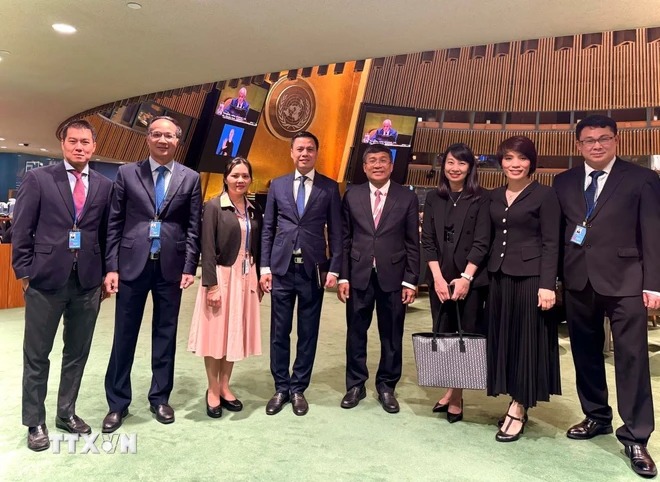 Đoàn đại biểu Việt Nam do Thứ trưởng Thường trực Bộ Ngoại giao Nguyễn Minh Vũ dẫn đầu, cùng đại diện Văn phòng Chính phủ, Bộ Quốc phòng, Bộ Công an và Phái đoàn thường trực Việt Nam tại Liên hợp quốc tham dự Hội nghị.