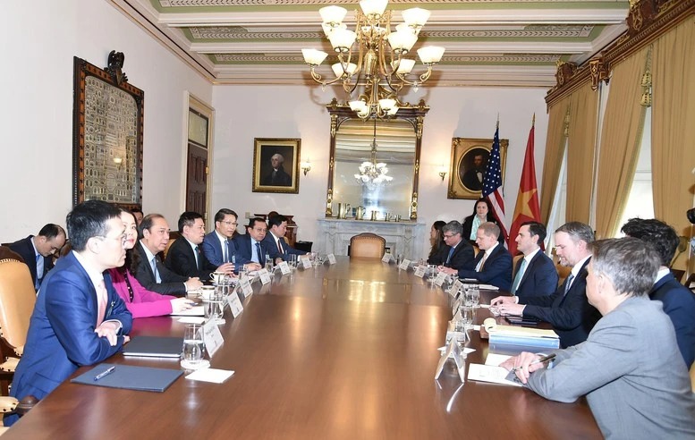 Chiều ngày 9/4/2025 (giờ địa phương), trong khuôn khổ chuyến thăm Hoa Kỳ với tư cách là Đặc phái viên của Tổng Bí thư Tô Lâm để trao đổi về các vấn đề kinh tế-thương mại song phương, Phó Thủ tướng Chính phủ Hồ Đức Phớc đã gặp Đại diện Thương mại Hoa Kỳ Jamieson Greer.