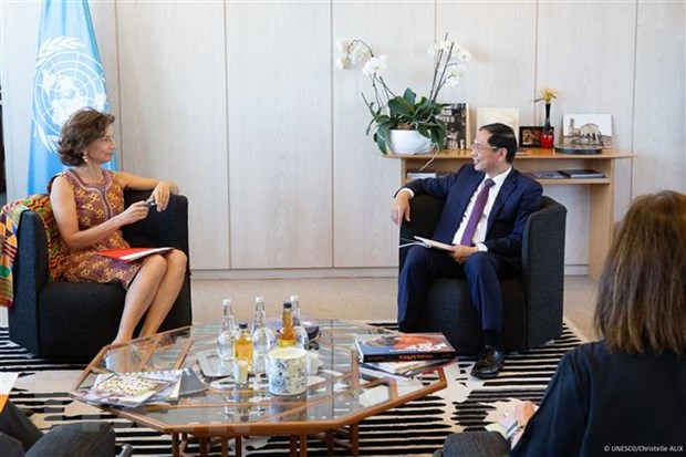 Theo phóng viên TTXVN tại Pháp, trong khuôn khổ chuyến thăm chính thức Cộng hòa Pháp, ngày 5/6, tại Paris, Bộ trưởng Ngoại giao Bùi Thanh Sơn đã tới thăm trụ sở Tổ chức Giáo dục, Khoa học và Văn hóa Liên hợp quốc (UNESCO), gặp và làm việc với Tổng Giám đốc UNESCO, bà Audrey Azoulay.