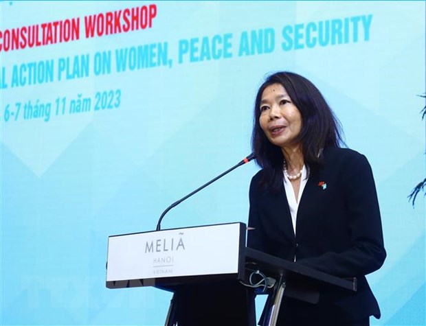 Phát biểu tại Hội thảo, bà Caroline Nyamayemombe, Quyền Trưởng Đại diện tổ chức UN Women tại Việt Nam, đánh giá cao việc Việt Nam xây dựng Chương trình Hành động Quốc gia về Phụ nữ, Hòa bình và An ninh.