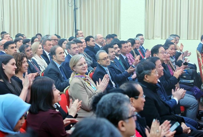Các đại biểu trong nước và quốc tế tham dự Chương trình Gặp gỡ hữu nghị chào Xuân Giáp Thìn 2024. (Ảnh: An Đăng/TTXVN)